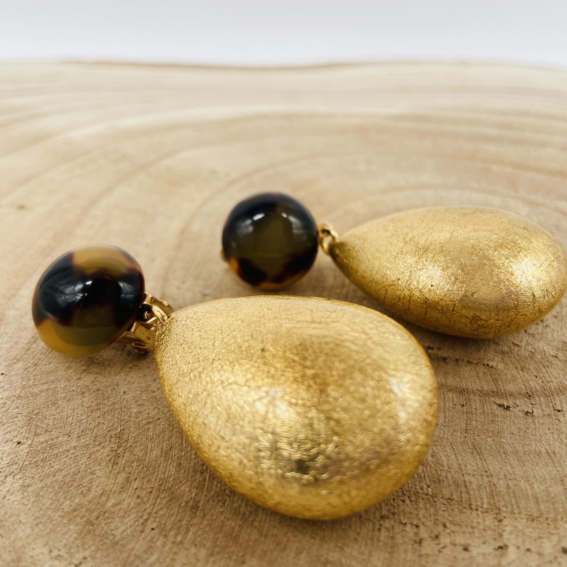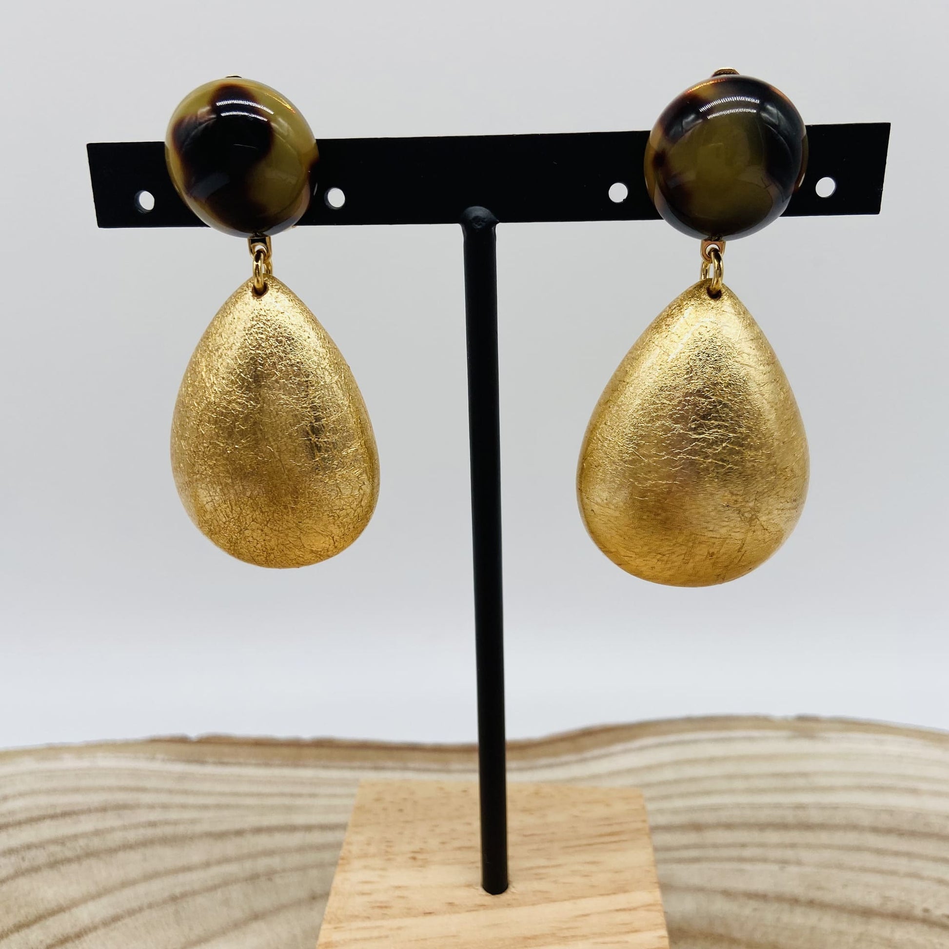 Boucles d'oreilles marrons gouttes dorées - Francine BRAMLI