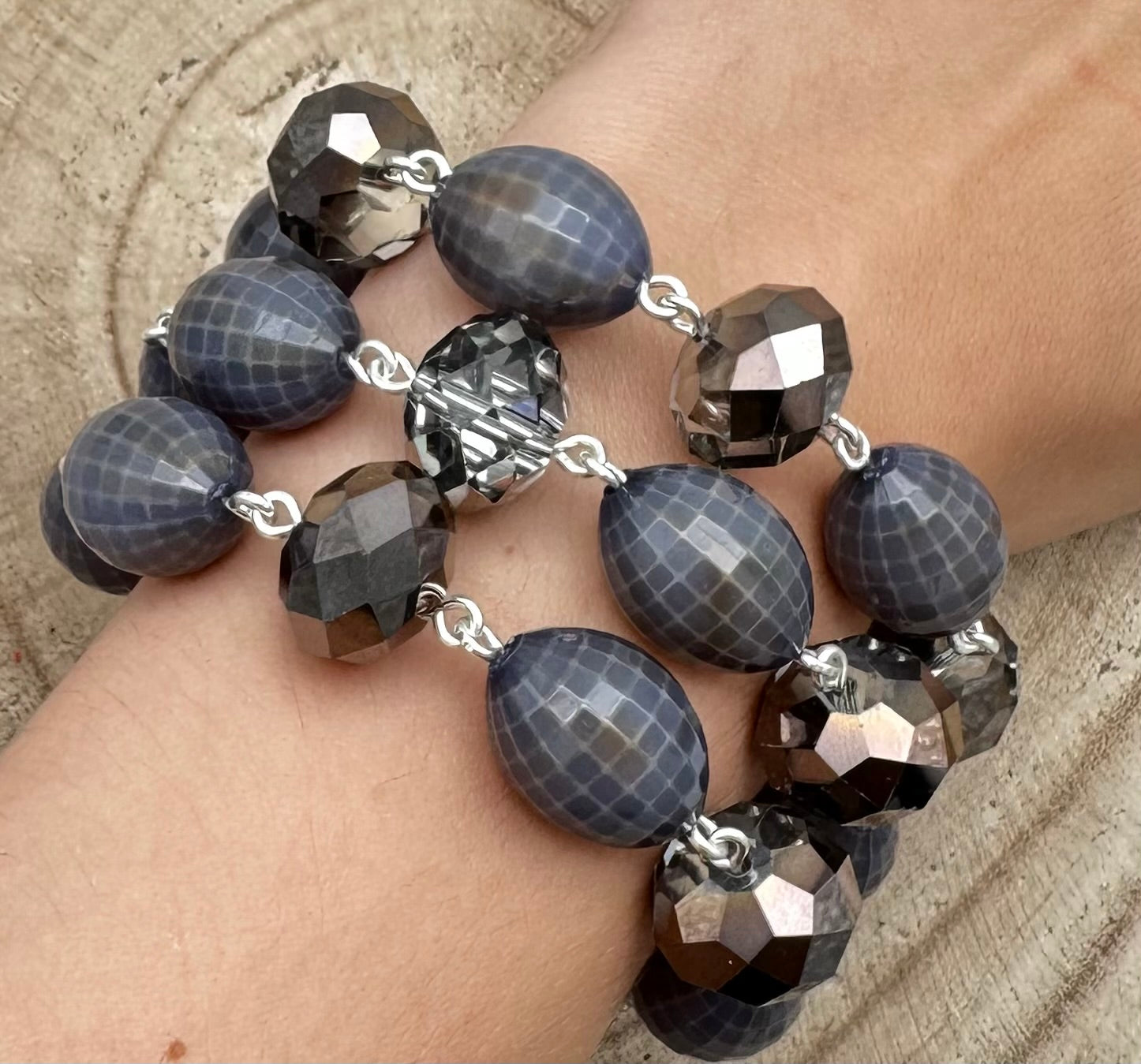 Bracelet Cristal, trois rangs, gris - Francine BRAMLI