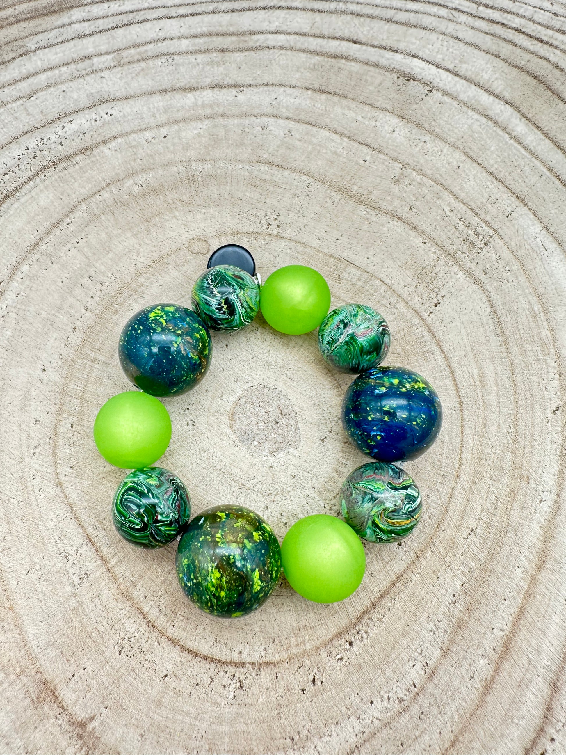 Bracelet élastique perles fantaisie, couleur vert, résine végétale - Francine BRAMLI