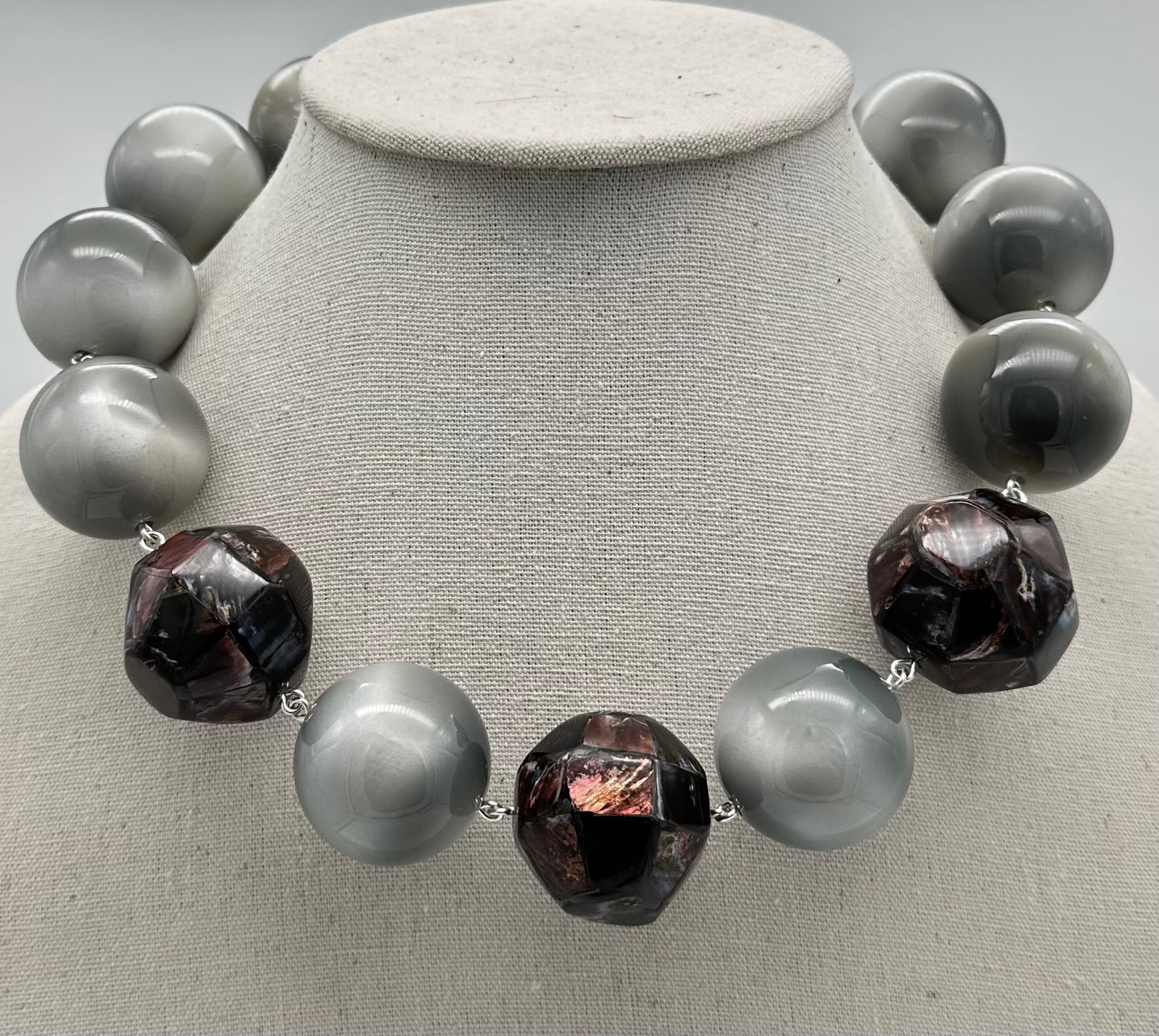 Collier Perles, grise - Francine BRAMLI