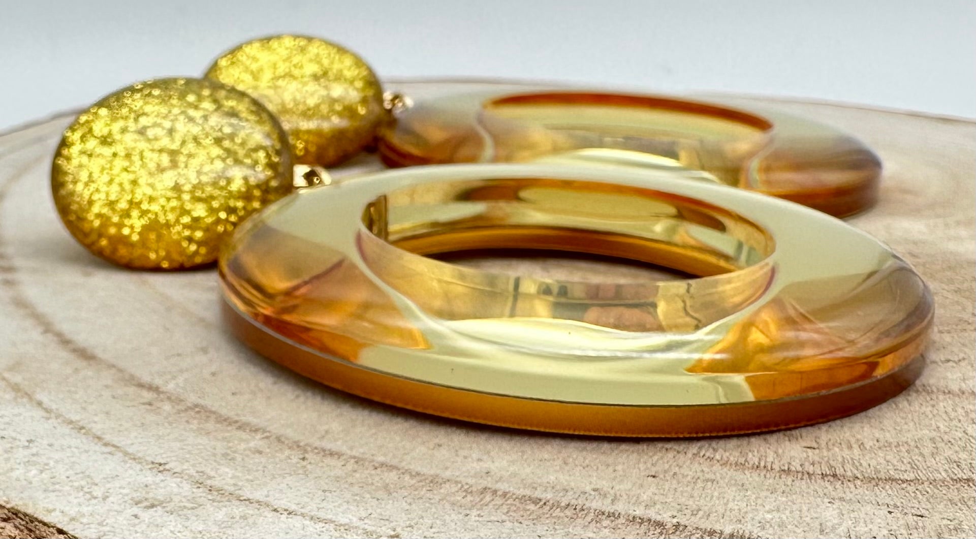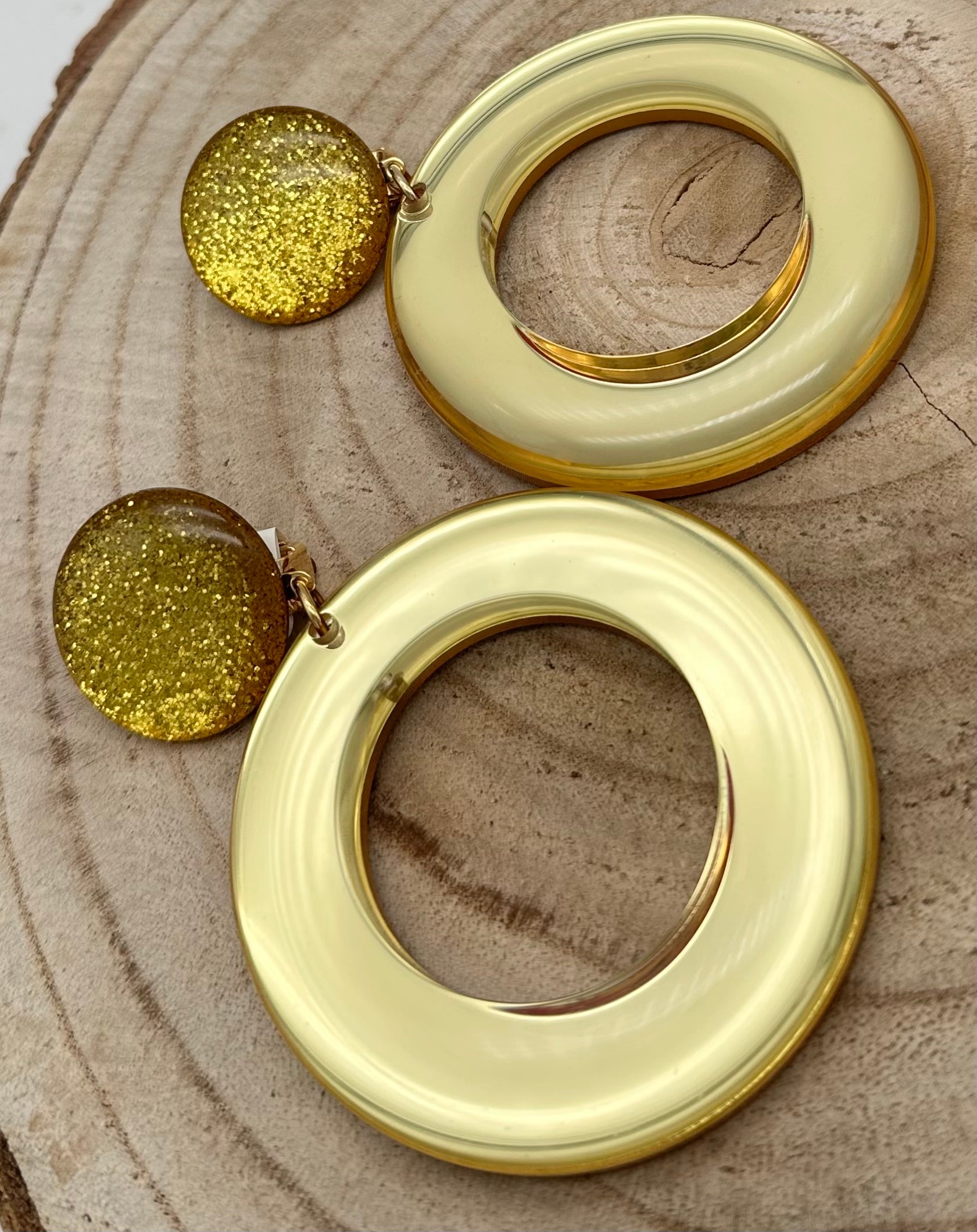 Boucle d’oreille Miroir jaune, cabochon jaune pailletté - Francine BRAMLI