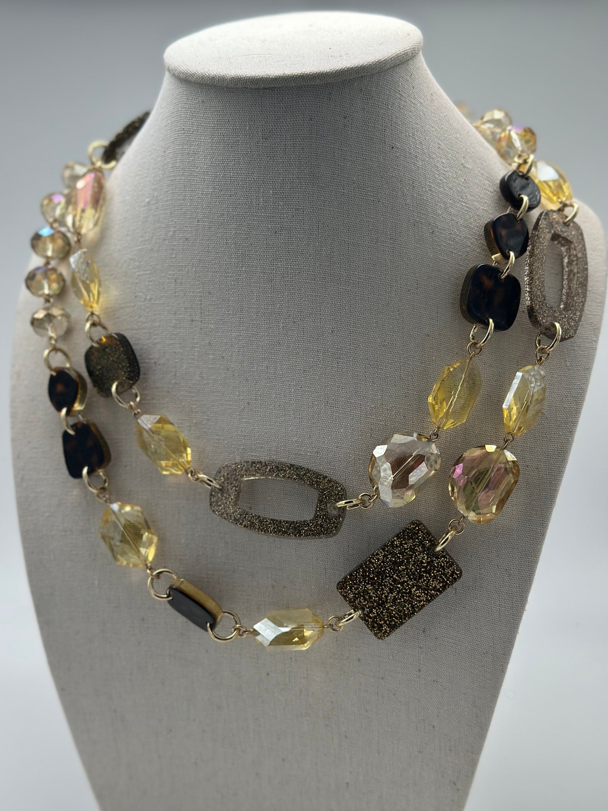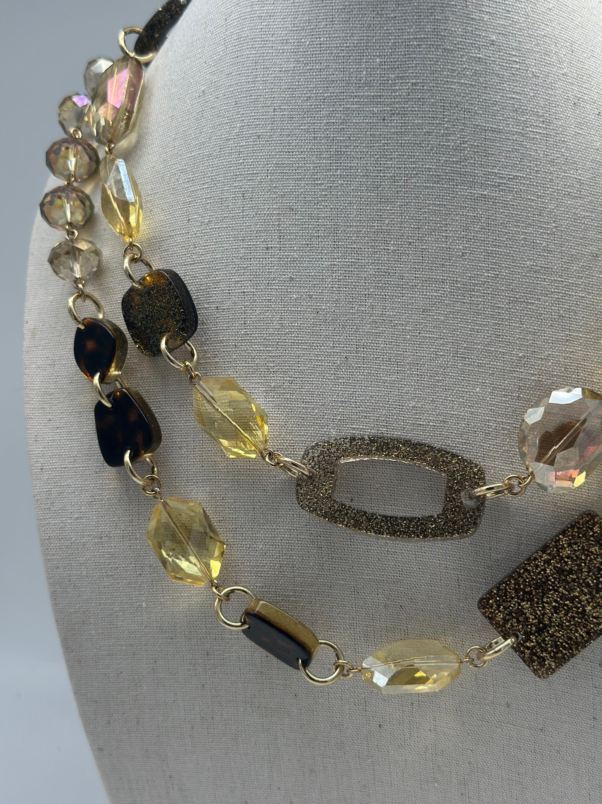 Collier éléments scintillants doré s et pièces en écailles - pièce en résine paillettes - Francine Bramli