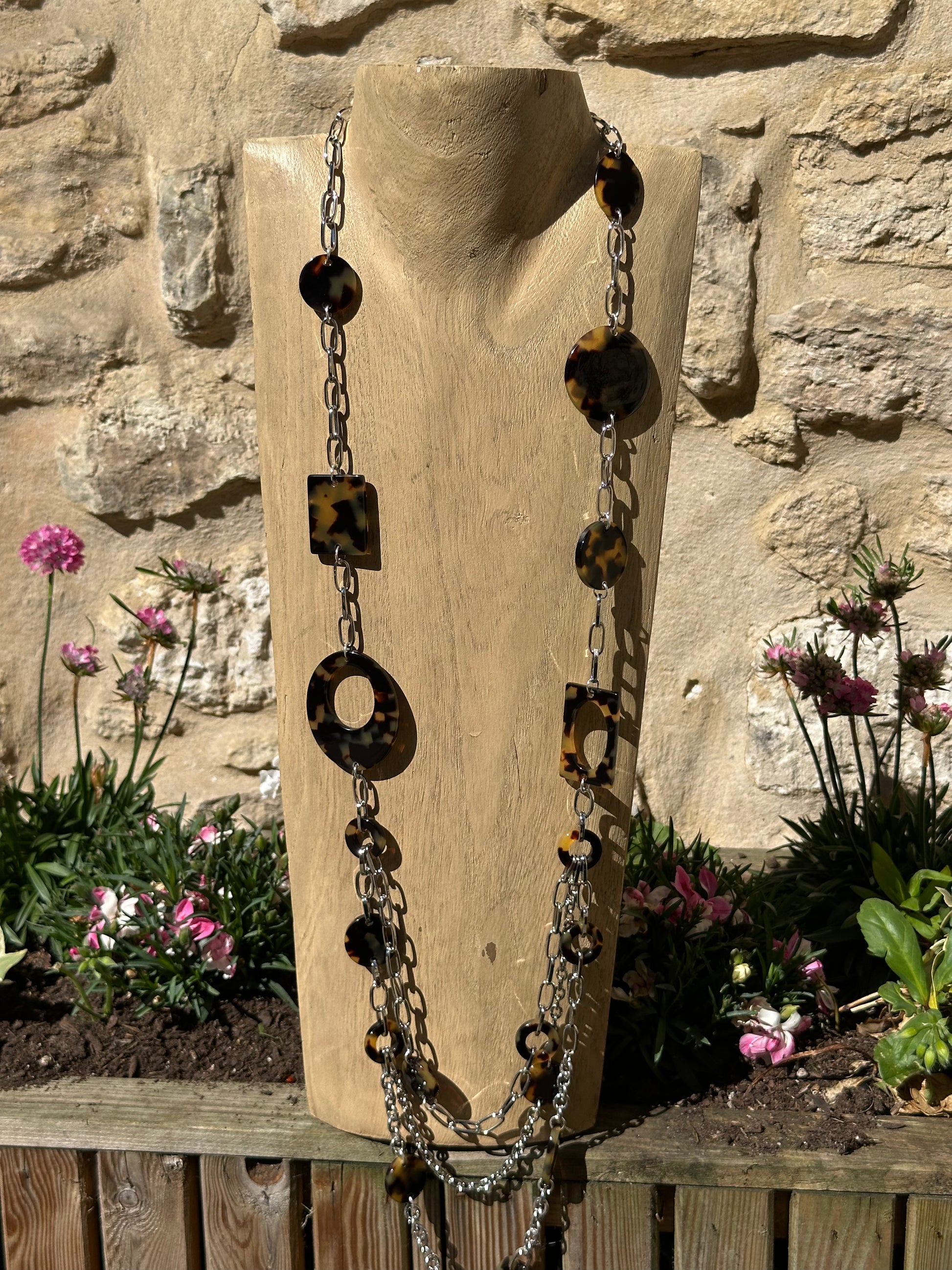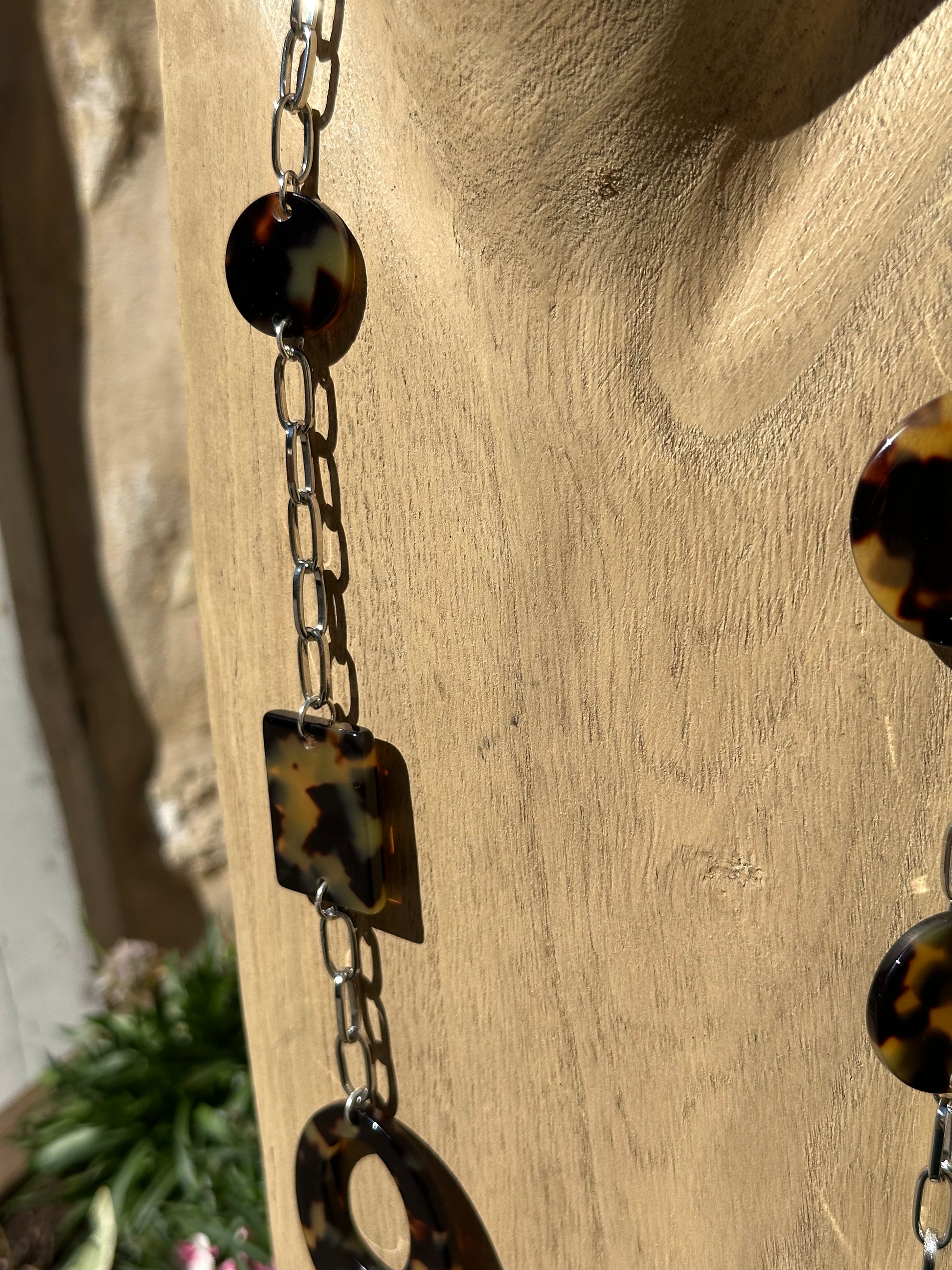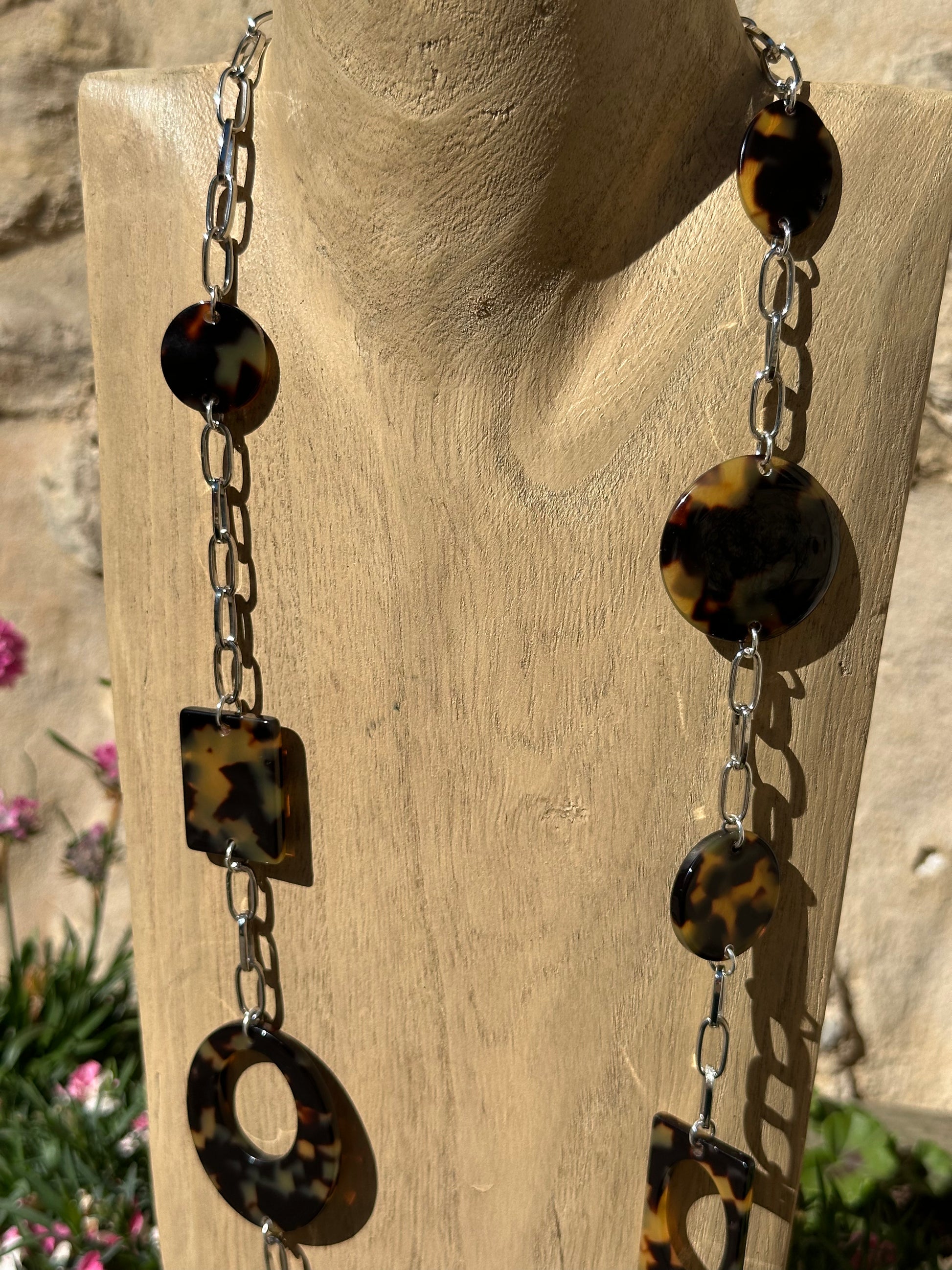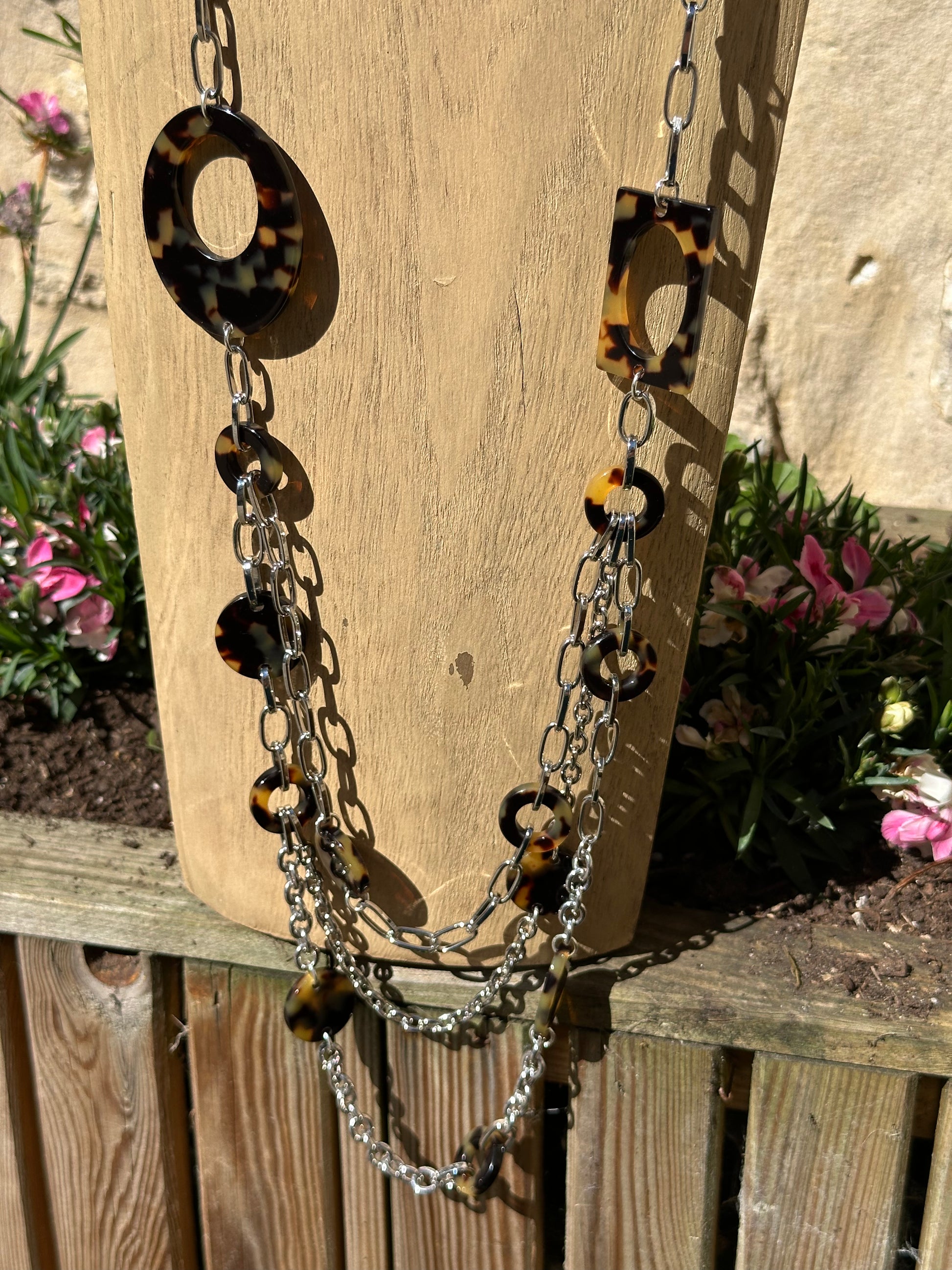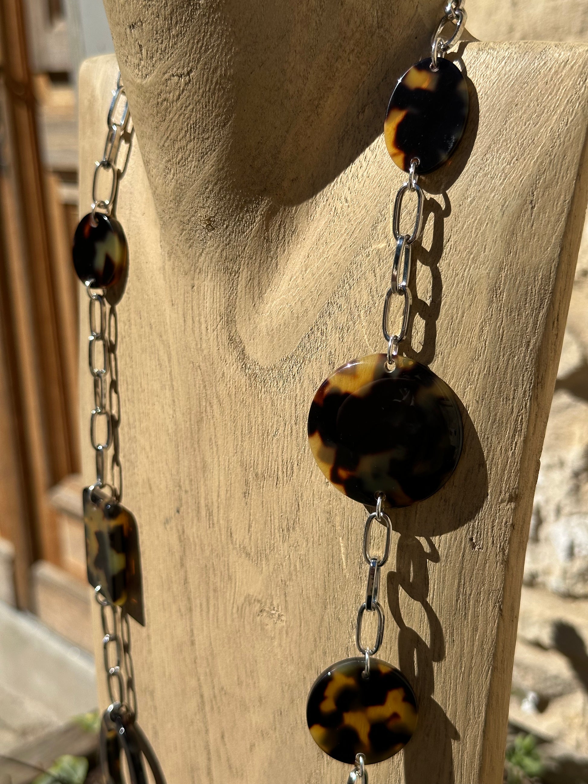 Sautoir 3 rangs, éléments plaques écaille tokyo, chaine argentée - Francine BRAMLI